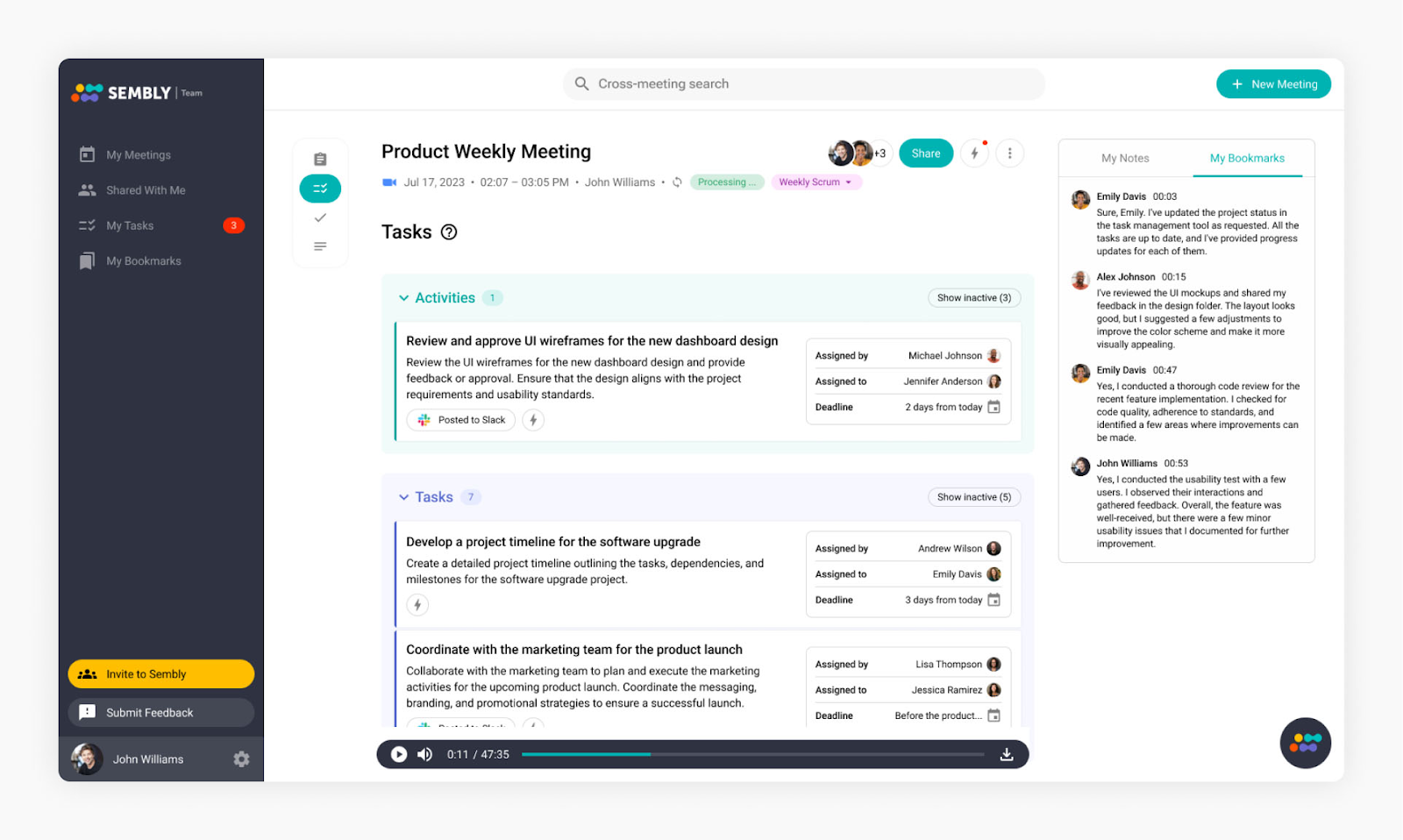 • Timestamped video navigation allows you to jump directly to specific moments in recordings